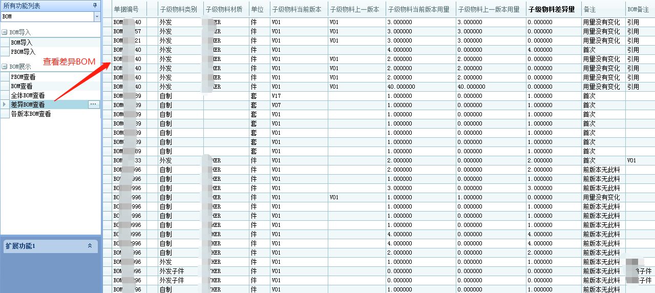 ERP中的BOM是指物料清单,是以数据格式来描述产品结构的文件,它又称为产品结构表或产品结构树。物料是指所有产品,半成品,在制品,原材料,配套件,协作件,易耗品等与生产有关的物品统称。配得快可实现将Excel中的BOM数据导入到ERP中(也可将ERP中的BOM数据导出到Excel中),同时可实现物料版本同步(更新物料表)。在配得快界面中可直接查看当前导入的BOM数据,可查看全部BOM数据,可仅查看差异BOM数据,也可查看所有版本的BOM数据。